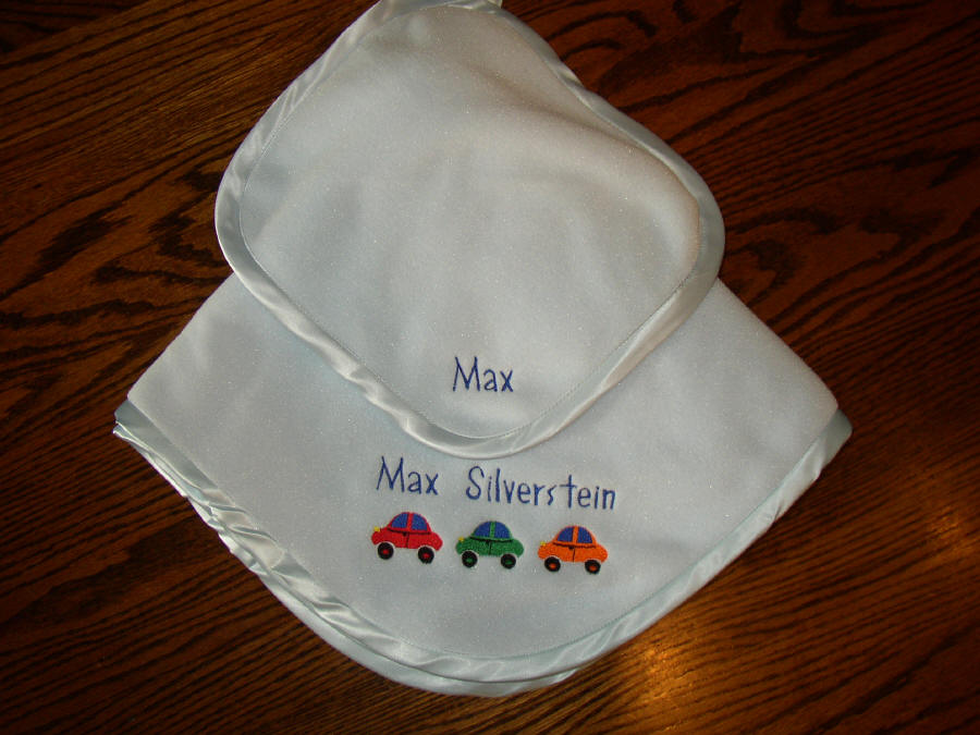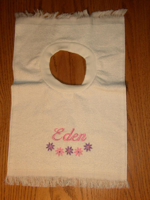 11 x 17 in. Terry cloth bib with a name and your choice of design.
